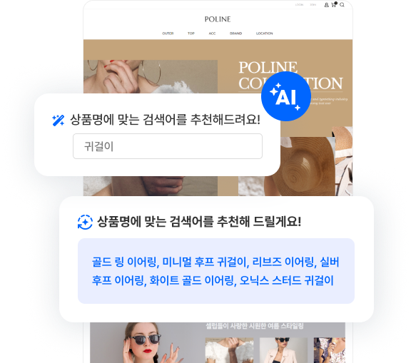 AI가 상품명을 분석하여 최적의 카테고리와 검색어를 추천해 드립니다. 간편한 상품 등록으로 더 많은 고객에게 도달하세요.