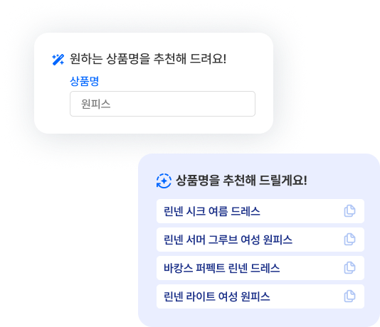 상품명만 입력하면 AI가 딱 맞는 키워드를 추천해 드려요